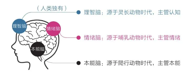 人的大脑主要分为三个部分。“本能脑”、“情绪脑”、“理智脑”