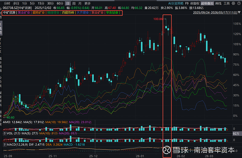 这里面怎么解读大家仁者见仁智者见智,但是我的观点有几个,一是中矿其实在整体大资金眼里是跟藏格、紫金、华友、赣锋H(H股便宜20%+)、天齐H(H股便宜40%)这类更偏中长期价值型,综合性的有色金属公司类比的,走势也高度一致,所以其实目前就是在慢慢定价中矿会是一个综合性的有色金属公司,小紫金的说法至少看日K线图来说是有一定道理的。二是最近的回调属于全行业的普遍回调,并不是中矿单独的,虽然在所有锂矿公司中跌幅达26.4%仅次于天齐H的28.4%,确实体验感很差毕竟天齐是直接卖矿还超额增发稀释股东权益,中矿再怎么辣鸡也不至于干成这样,另外中矿第二类公司平均的跌幅都20%,即使是紫金这类有色龙头大白马也回调了22%,所以严格意义上来说中矿超额多跌的也就多了5%~7%,这部分就是对津巴BW事件的额外定价,并不存在所谓彻底完蛋的说法。