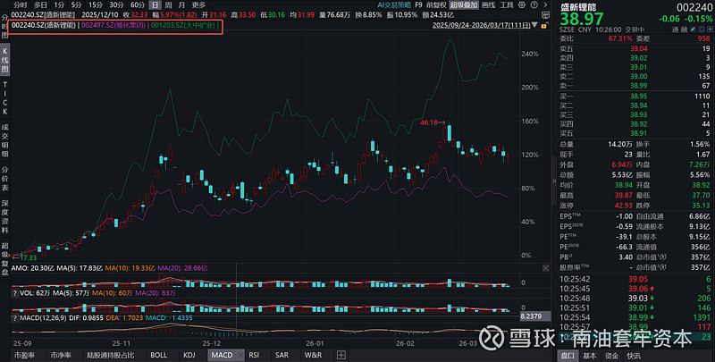 接下来我们看看第三类公司,分别是2月25日最高点的盛新与雅化,以及2月26日最高点的大中,这里的走势也是高度一致的,正如我们所预期,当然这里也有个异常情况,就是大中,可以看到大中(绿色线)走的异常的强势,根本不跟随大板块回调,很明显的资金逆势炒作迹象,毕竟有钱就有理(锂)。