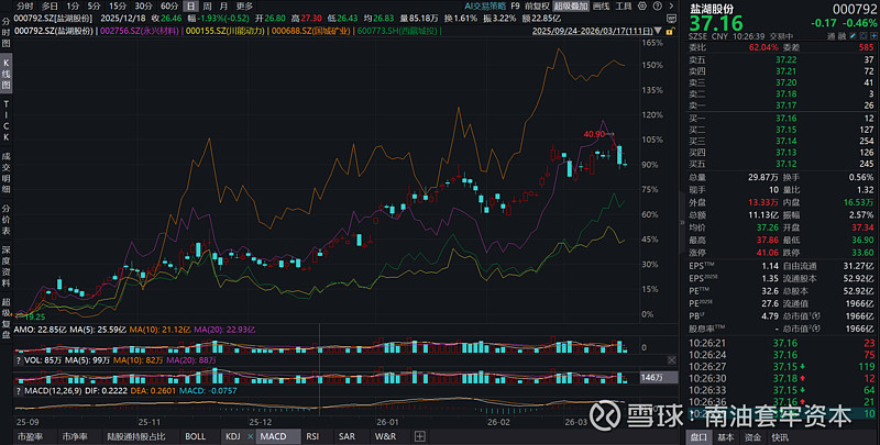 最后是第四类,以盐湖、永兴、川能、国城和城投为代表的公司,走势也是高度一致,归为一类,这类都不属于特别纯的锂矿,比如盐湖80%以上收入来自钾肥,永兴80%收入来自不锈钢材料,川能一半以上都是发电、城投就是个房地产公司,这类就不多评价,但是确实看图说话走势也是非常明显的相似。