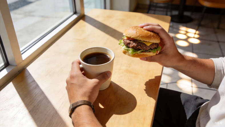 咖啡主打早间提神、午后休闲,汉堡则能覆盖午间简餐需求,两者结合既能拓宽门店的营业时间段,填补下午时段的流量空白,又能有效拉高客单价。在固定的店租与人力成本下,咖啡+西式简餐,更容易实现单店效益的最大化。