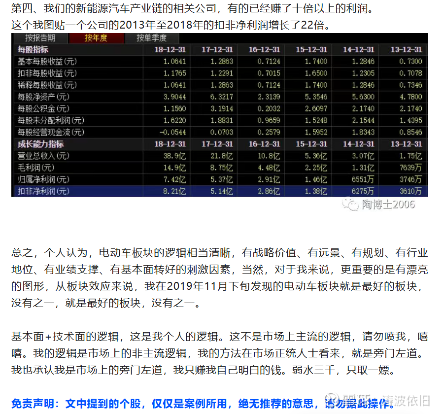 陶博士推荐了电动汽车这个板块,具体这个板块的成长性,新闻,行业数据等都需要我们投资者自己去亲自挖掘,才能增强持股信心。