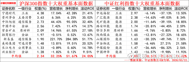 从数据上看,沪深300前十大权重股的营收和净利增速以及净资产收益率都非常的强势,充分展示了“好货不便宜的”特点,而中证红利前十大权重股的基本面就比较糟糕了,看上去真的算是“便宜没好货”了。