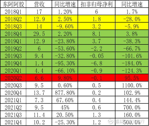 先来看同样作为可选消费品的东阿阿胶,近一轮也经历了艰难的去库存周期,它的财报数据如下表。