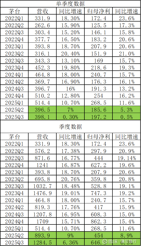 可以看出相比2020、2021年营收、净利数据,2022、2023、2024Q3前茅台营收增速同比都偏高,在2023、2024年明显超常销售,尤其2023年茅台向渠道压货明显。而茅台主要的去库存动作是在2025Q2季度开始的。如果我们把2022年作为茅台当前市场可接受的销量来计算的话,这两年茅台向渠道多压了约15000吨茅台。