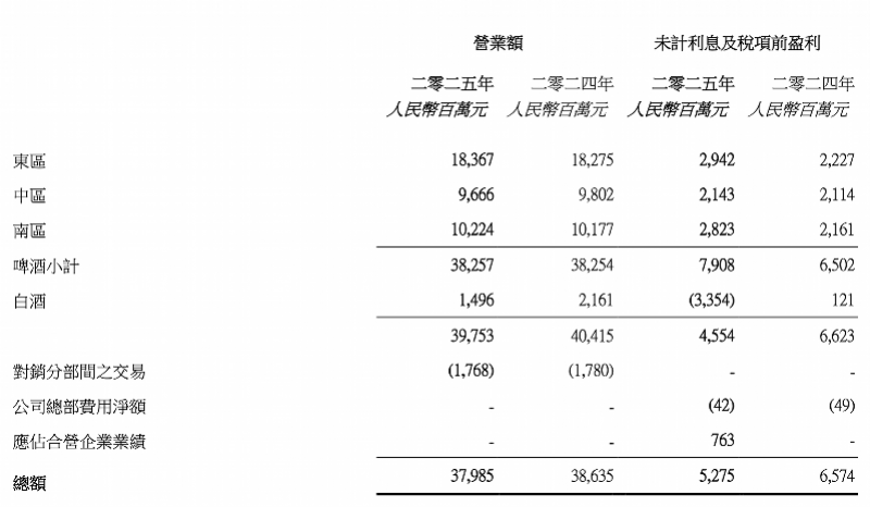 华润啤酒2025年部分业绩数据。(截图来源:公司年报)