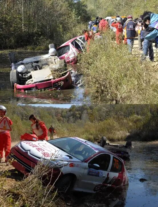 张诺的车紧随其后,同样因减震失效在落地后几乎失控,车尾也栽进水塘。她和她的领航员侥幸脱险,并抓住落水的队友,将她们从水中拉出。如果水面再深30厘米,也许两位队友就没命了。