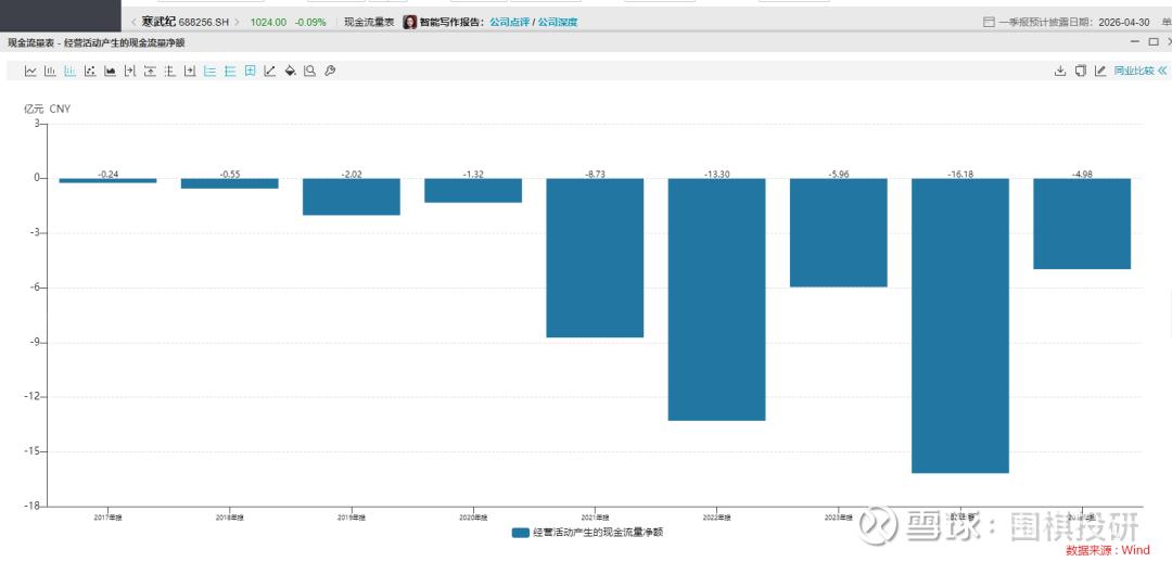 寒武纪的AI芯片业务随着大客户订单的落地,已经跨过了盈亏平衡点,商业化进程进入到了真正的爆发期。不过寒武纪最大的问题还是经营性现金流持续为负,哪怕像25年已经大幅盈利了,他的现金流还是不太好。