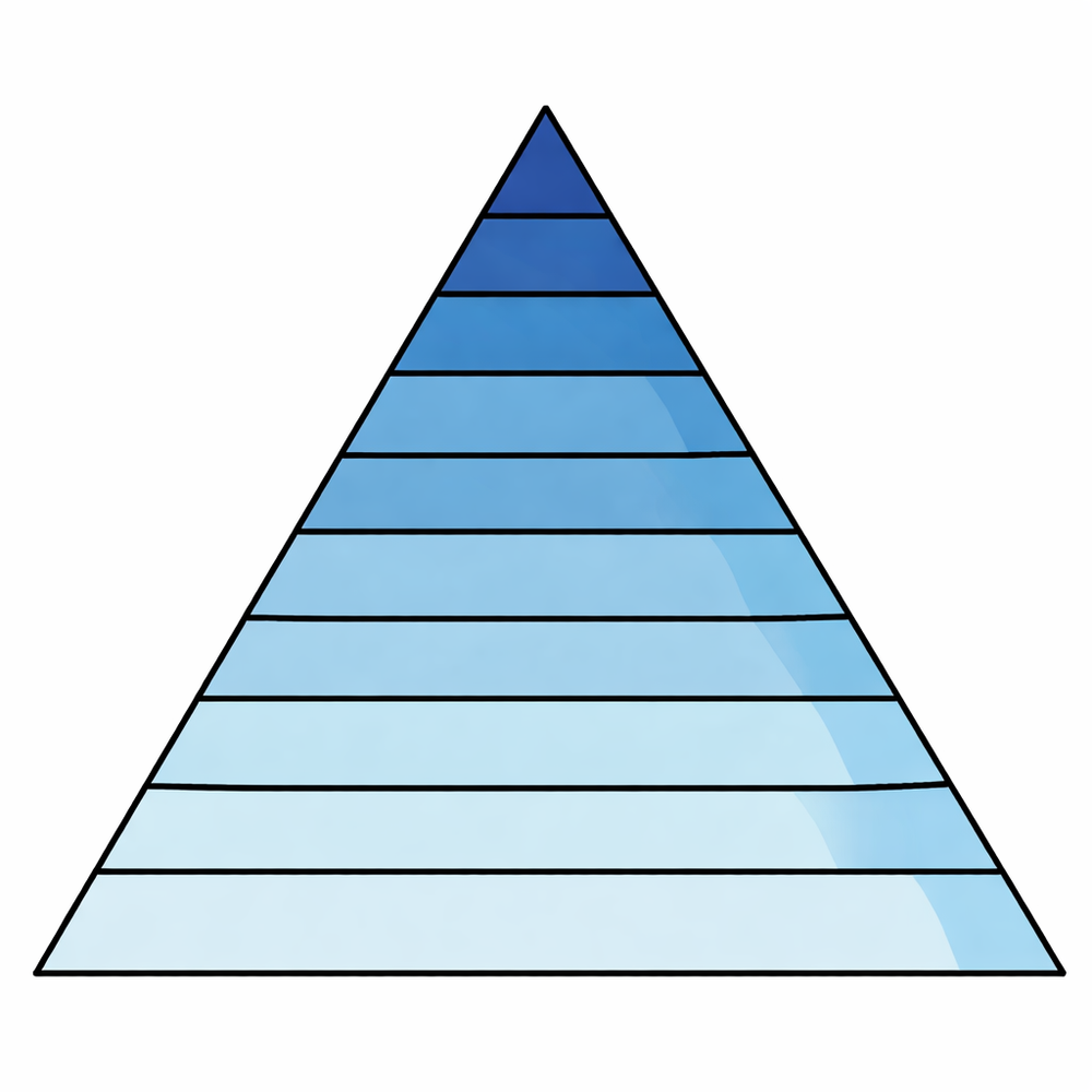 最顶端,是极少数拥有极高财富的人(像一根“天线”),中间是绝大多数消费人群组成的三角形,越顶端人数越少,财富越多,越靠下财富越少,人数越多。