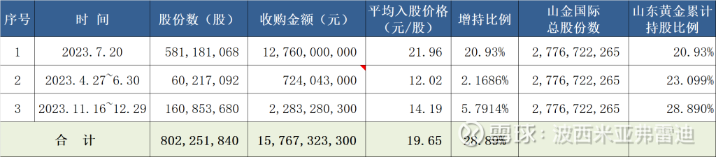 3、山东黄金对山金国际的收购记录