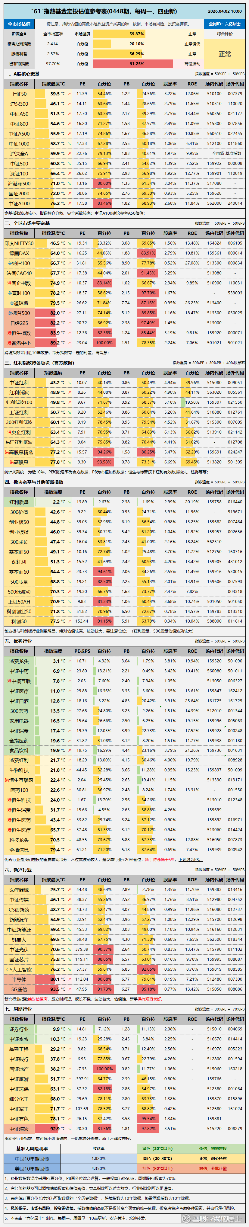 三、61指数基金估值表(0448期)