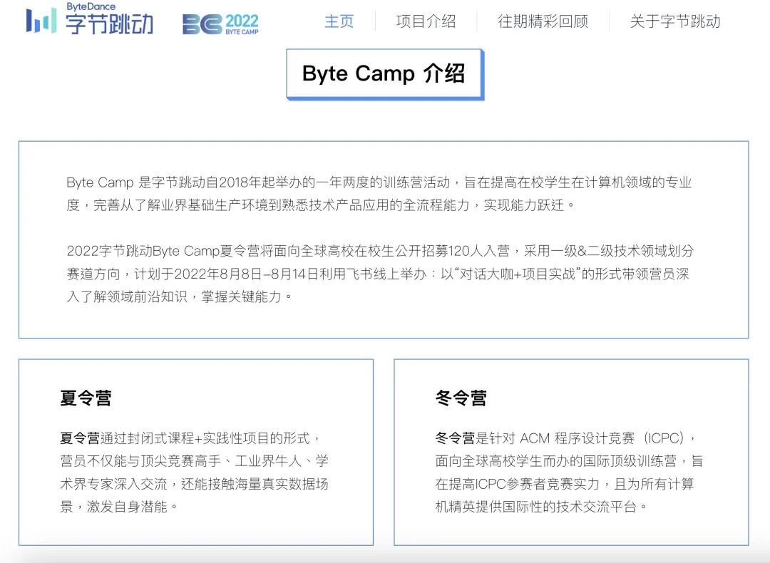 Byte Camp训练营(图源“字节跳动网站”)