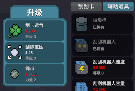 进入二周目后,有局外养成的快速启动,游戏刮奖赚钱的效率会随养成进度提升,同时解锁更多种类的刮刮乐。其中有新鲜的玩法,也有之前几种玩法的拓展形态。