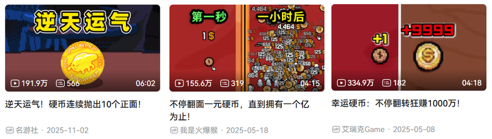 2025年9月,多款小众黑马再次沿着《幸运房东》的路线,打响了声势。其一是《四叶草深渊(CLOVERPIT)》为代表的新品,其二是《不公平的抛硬币(Unfair Flips)》为代表的新品。