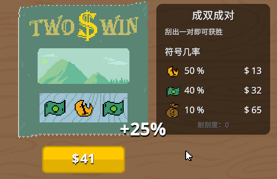 之前的擦盘子相当于一个教程,用一个小场景,引导玩家体验了“花钱购买盘子/彩票→擦干净/刮开遮蔽图层→赚钱/赔钱”这套流程。某种意义上,脏盘子属于回报率极低、回报效率慢、小概率会连本带利亏损的“变相刮刮乐”。