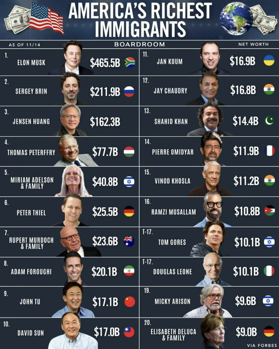 美国55%的“独角兽”(十亿美元以上)初创公司,是由第一代移民创立的。二战后,美国靠着吸纳全世界最顶尖的头脑(包括大量的华裔、印度裔、东欧裔科学家),垄断了人类的智慧巅峰。