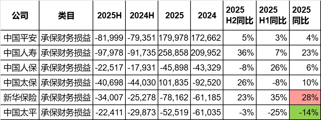 那么之前的那个问题,目前已经有答案了,太平为什么总投资收益率没涨,但是投资业绩大涨了?答案肯定是承保财务损益减少了。下图就是承保财务损益的对比: