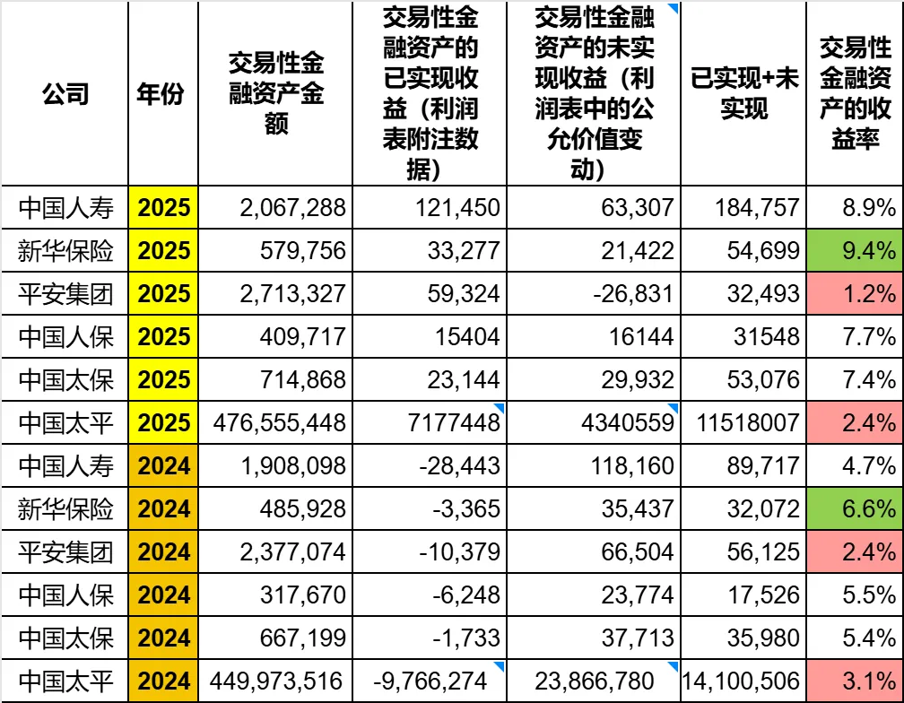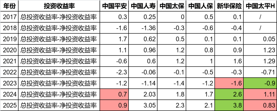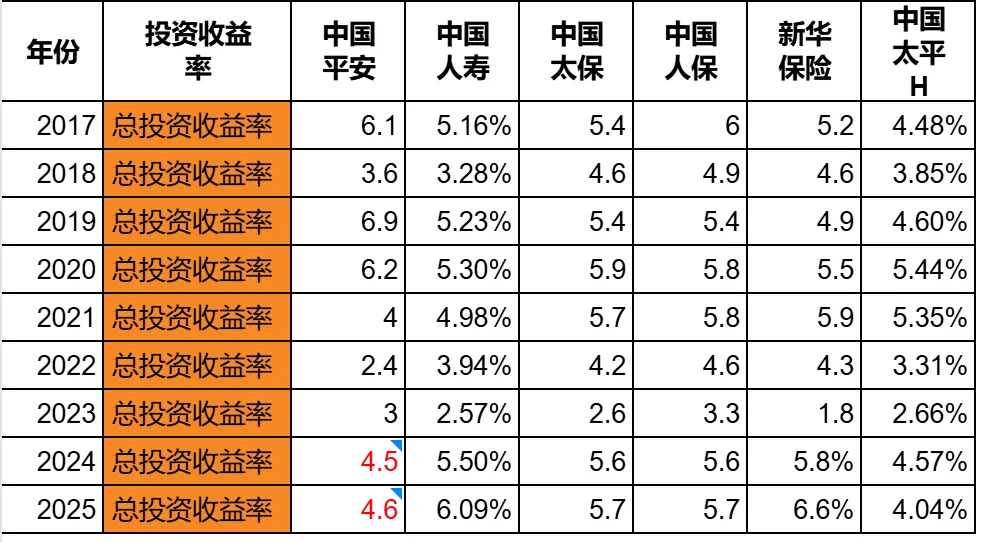 (数据说明:平安从2024年开始不再公布总投资收益率,2024年和2025年的数据是我自己算的。)