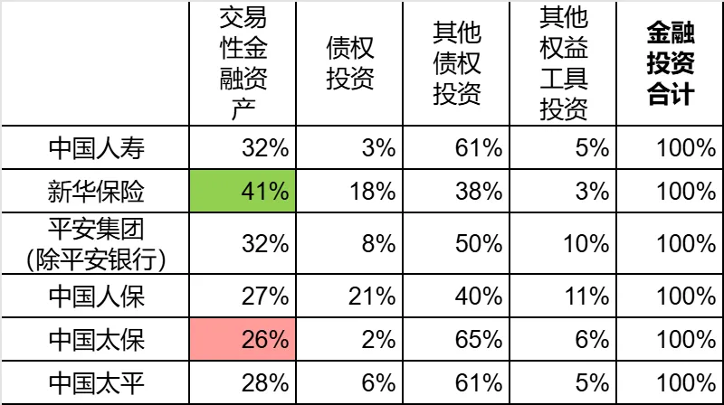 也就是说,新华保险不光是交易性金融资产的占比高,同时这部分资产的收益率也是最高的。这就是为什么我用总投资收益率减去净投资收益率,新华的数据是最高的。