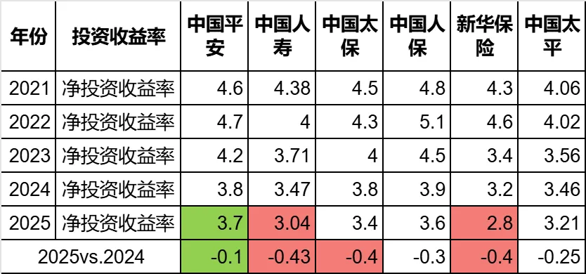 (数据说明:平安从2024年开始不再公布总投资收益率,2024年和2025年的数据是我自己算的。)