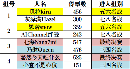 赛况也反映了这一点:V萌8进4比赛中,嘉然击败了在V吧颇具影响力的初代萌王“物述有栖”,与同团的向晚会师四强。按照当时A-SOUL内部的票力分布,嘉然距离夺冠只剩一步之遥。