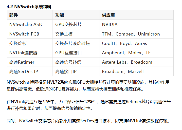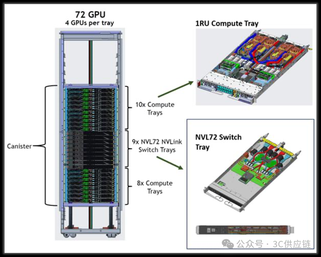 在接下来的章节中,将按照上述模块划分,逐一介绍NVL72系统中各个硬件模块的结构组成以及对应的关键物料与供应链。