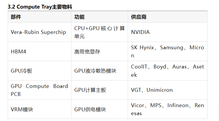 每个Compute Tray内部主要包含:GPU计算板、HBM高带宽内存、供电模块液冷散热系统