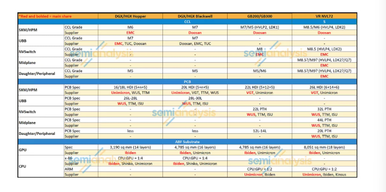 主要服务器PCB供应商包括:VGT、Unimicron、WUS、TTM、ISU