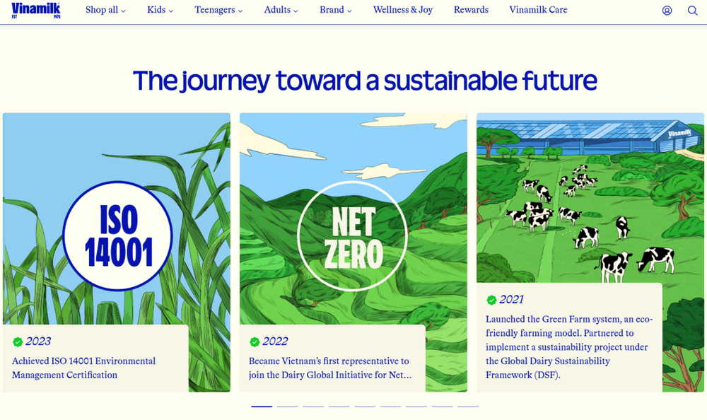 但Vinamilk在供应链层面也是深耕细作的代表。它是全球率先获得PAS 2060碳中和认证的乳制品公司之一,多个工厂和牧场通过认证。其“绿色农场”采用循环生态模式:牛粪转化为有机肥滋养500公顷牧场,沼气用于发电,形成闭环。2024年每吨产品碳排放较上年减少9.2%。