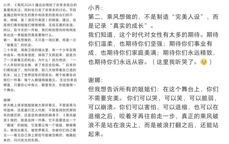 《超级女声》给了全国各地、不限年龄但热爱唱歌的普通人登上舞台、一夜成名的机会,《乘风2026》给了各个行业30+的姐姐们重新出发、翻红再就业的可能。