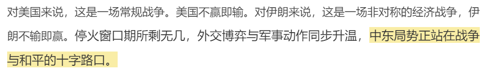 如果说过去很多人还把中东冲突视为地区性问题,那么今天已经越来越难这样看了。霍尔木兹海峡、能源价格、航运安全、金融制裁、供应链扰动,这些都意味着:一场发生在中东的地缘冲突,正在通过市场和系统,把成本扩散到全球。对美国来说,这是一场军事与战略威慑意义上的博弈,不能轻易失手。