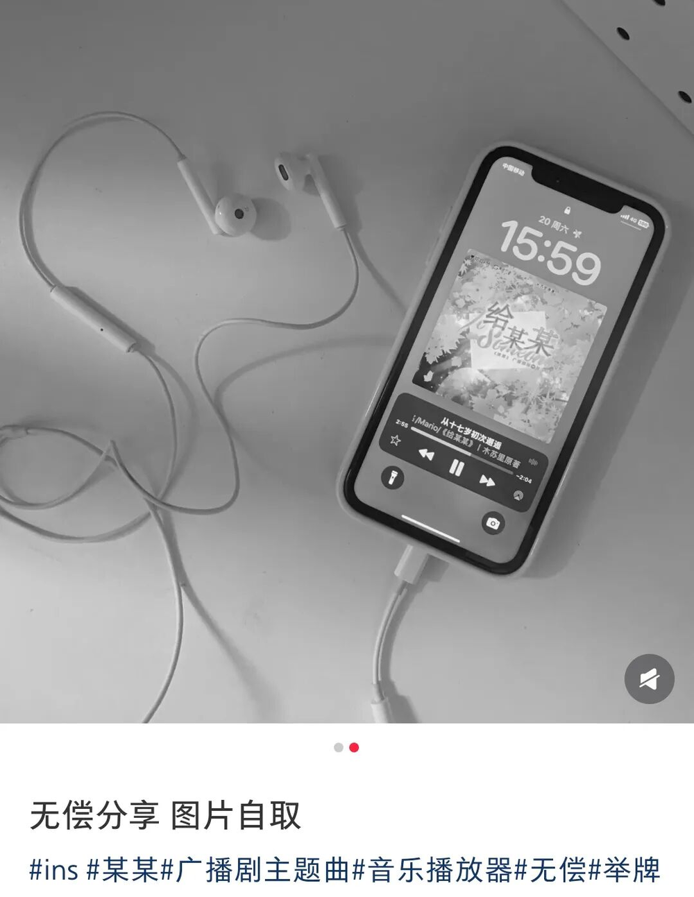 有线耳机营业图,咋听多少有一些抽象,实际上就是为展现某一首歌、广播剧、有声小说或是艺人图片等,搭配有线耳机、手机等,拍摄一张具有氛围感的定制图或是有声live图。