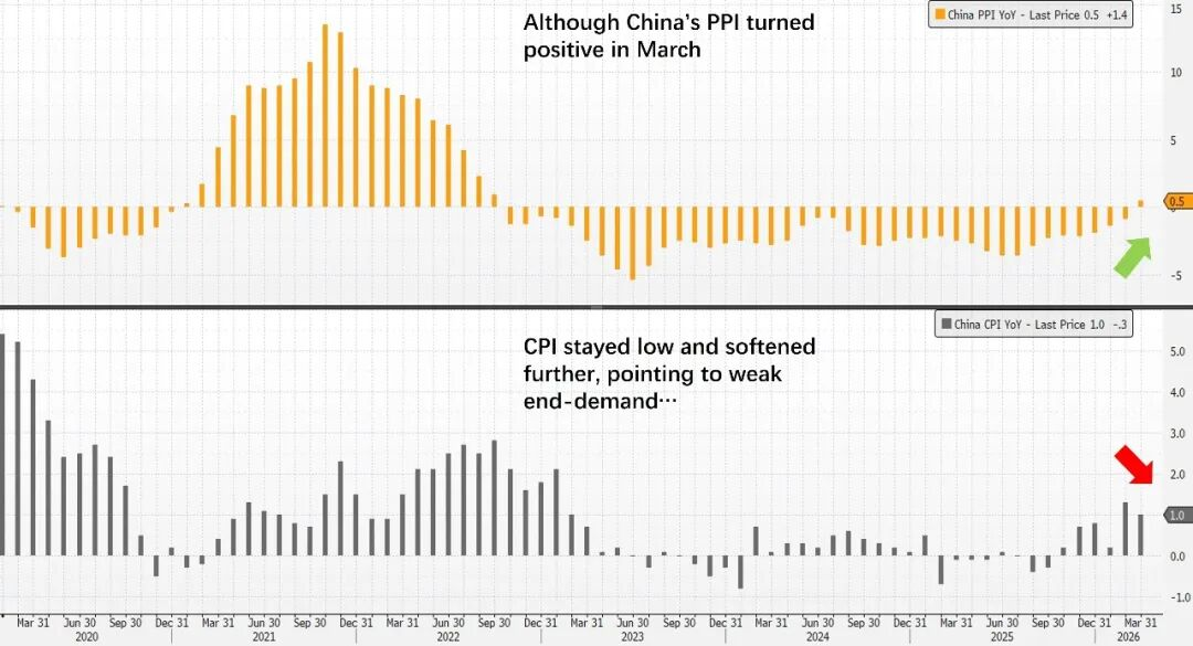 • 受地缘局势降温的影响,上周大中华资本市场同步反弹,上证综指单周上涨2.7%,盘中一度重回4000点,恒指与恒生科技指数周涨幅也均超过3%。宏观层面,中国3月PPI同比上涨0.5%,结束连续39个月负增长并首次转正,主要受中东冲突推升全球能源与化工品价格,以及国内部分行业供需关系边际改善所带动。不过,本轮价格修复仍主要集中在上游,需求端依然偏弱:3月消费品PPI同比仍下降1.3%,反映成本向终端传导并不顺畅,中下游企业利润率或继续承压;同时,3月CPI同比回落至1.0%,核心CPI同比降至1.1%,主要受春节后服务价格回归常态及食品价格走弱影响,基本抵消了零售汽油价格上涨的支撑。整体来看,当前通胀回升更偏向供给冲击驱动,内需修复力度仍有待进一步验证。