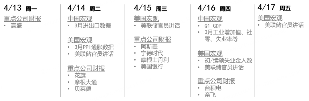 大中华方面,上周上证、恒指等各大指数同样出现反弹。宏观层面呈现“上游修复、下游偏弱”的特征,3月中国PPI转正更多受供给冲击与上游价格推动,CPI与消费品价格仍显示内需修复斜率有限。配置上,我们继续看好“中国周期+中国科技”的资产组合,重点关注国产AI链、新能源车出海,以及仍处预期修复阶段的低估值周期板块。