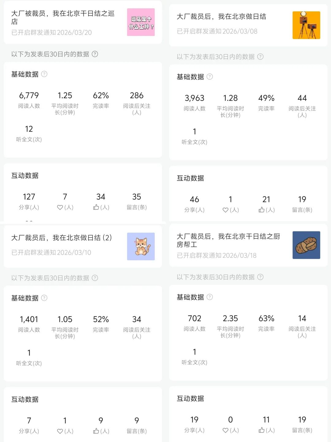 3. 大厂裁员的日结系列阅读量最高,毕竟反差大,有阅读量在意料之中。