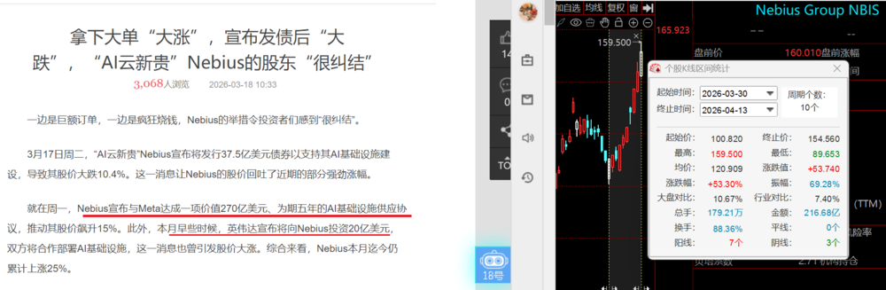 Nebius:其前身是“俄罗斯版Google”Yandex的母公司,现彻底转型为AI算力基础设施提供商。它手握微软等公司价值至少174亿美元的长期GPU租赁协议,其股价和业务状况成为反映北美算力租赁市场景气度的重要指标。
