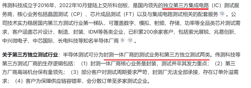 伟测科技(688372.SH)是国内领先的独立第三方集成电路测试服务企业,聚焦高端芯片测试(高算力、高可靠性芯片),正处于快速成长通道。
