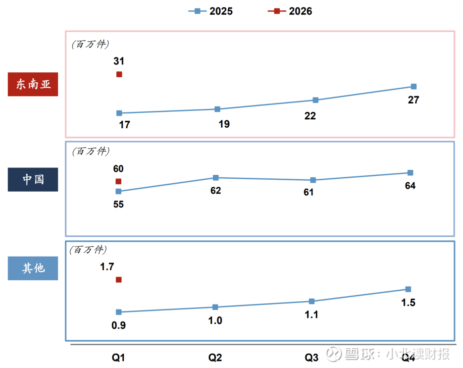 分地区看,东南亚27.68亿(日均3,080万)、中国54.04亿(日均6,000万)、其他市场1.54亿(日均170万)。