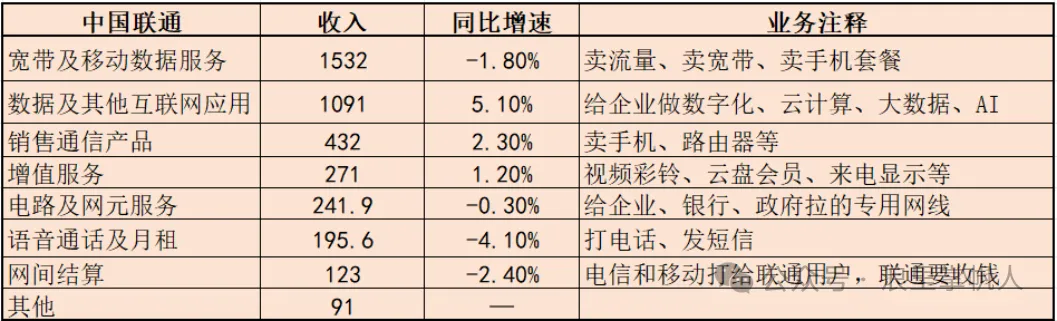 中国联通与个人相关的宽带及移动数据服务、语音通话及月租收入下滑,与企业的业务还在增长。