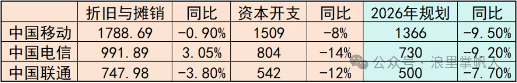中国电信和中国联通的折旧方式跟中国移动一样,趋势也差不多。