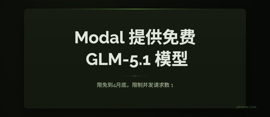 Modal 是一个提供云AI算力的平台,目前提供免费的 GLM-5.1 模型到月底,但限制并发请求 1。