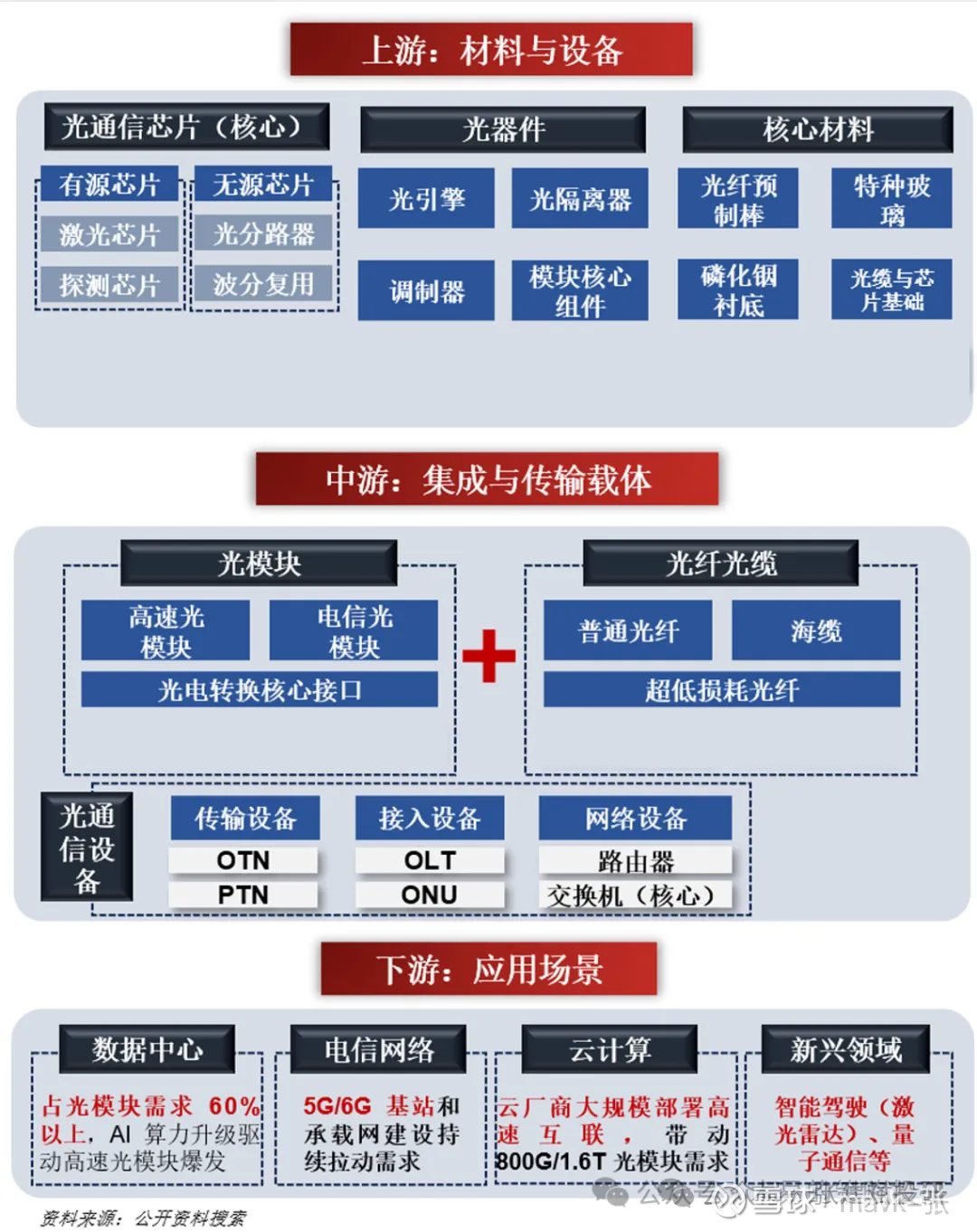 覆盖数据中心、算力网络、运营商等核心应用场景,尤其是AI智算中心,其对高速传输的刚需,直接推动了上游光芯片、中游光模块的需求爆发,成为驱动整个产业链增长的核心动力。