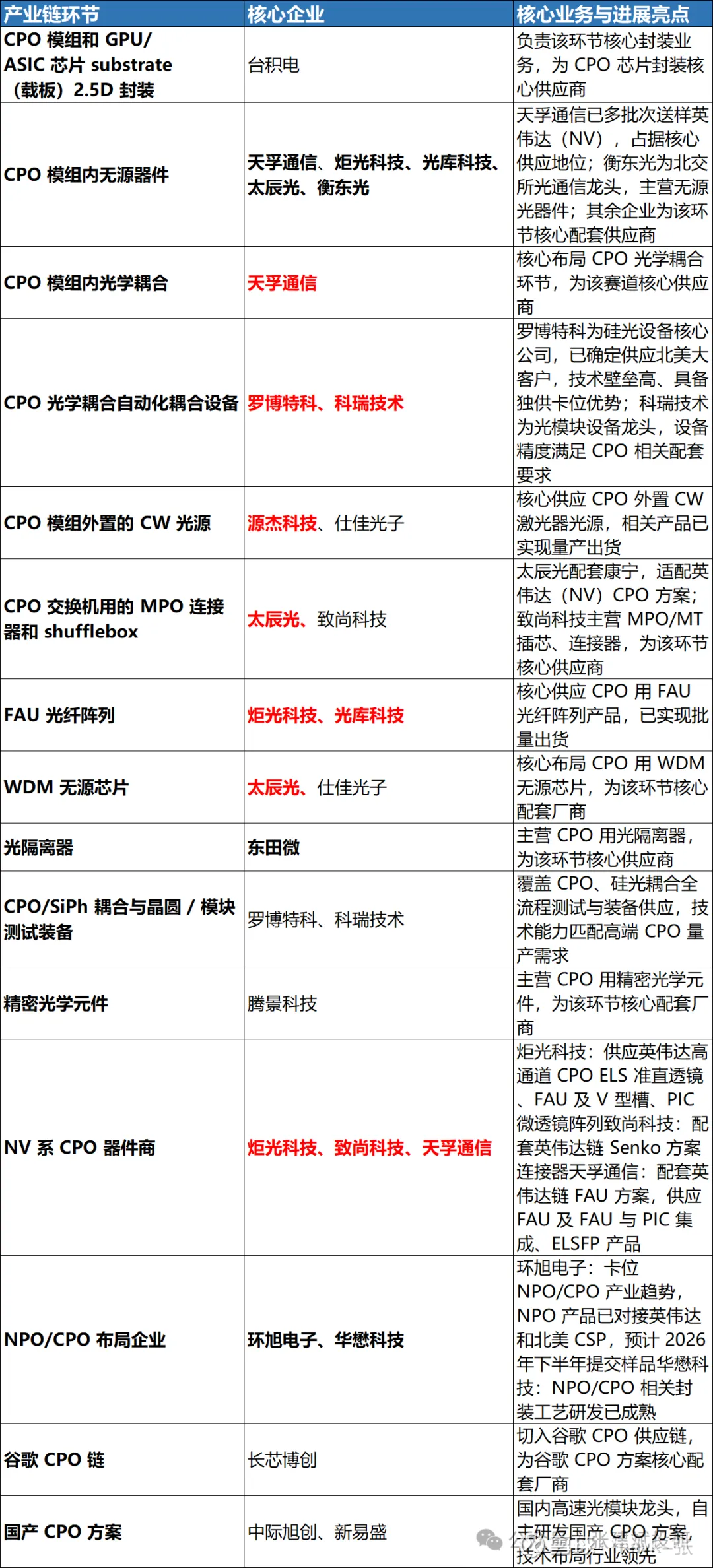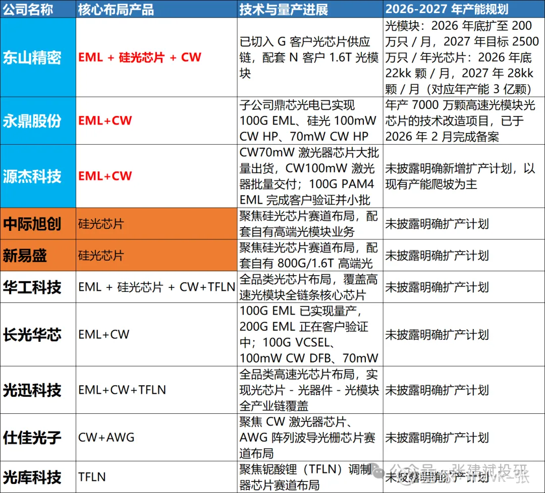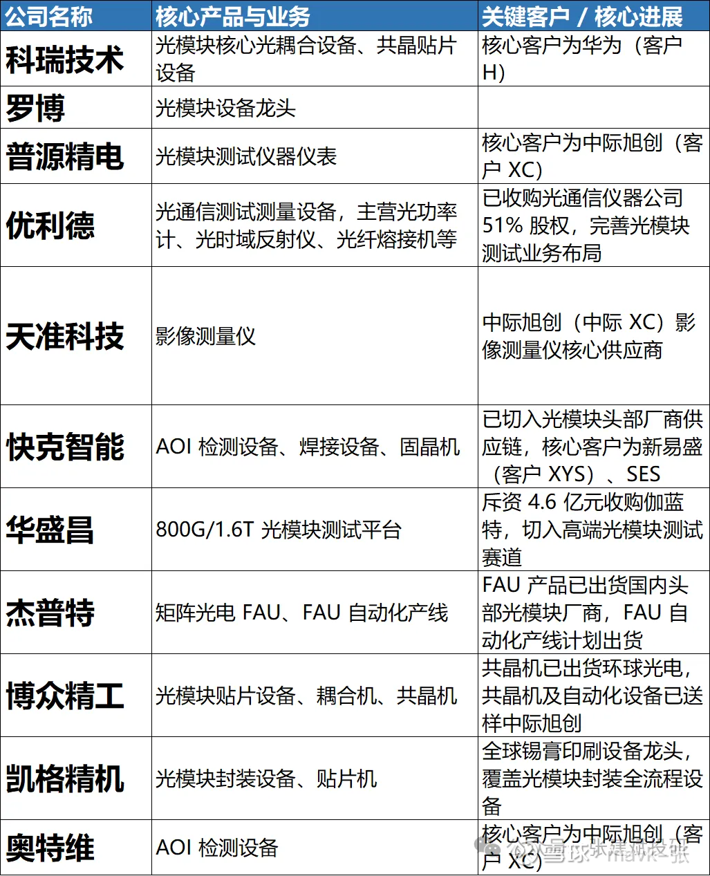 代表企业中,天孚通信是全球无源光器件龙头,深度绑定中际旭创、新易盛等光模块龙头,产品品质全球领先,订单持续饱满;