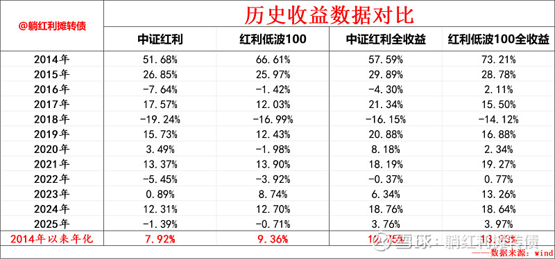 从历史收益数据来看,2014年到2025年期间,红利低波100的价格指数长期年化收益要比中证红利高了1.44%,红利低波100的全收益指数长期年化收益比中证红利高了1.18%,