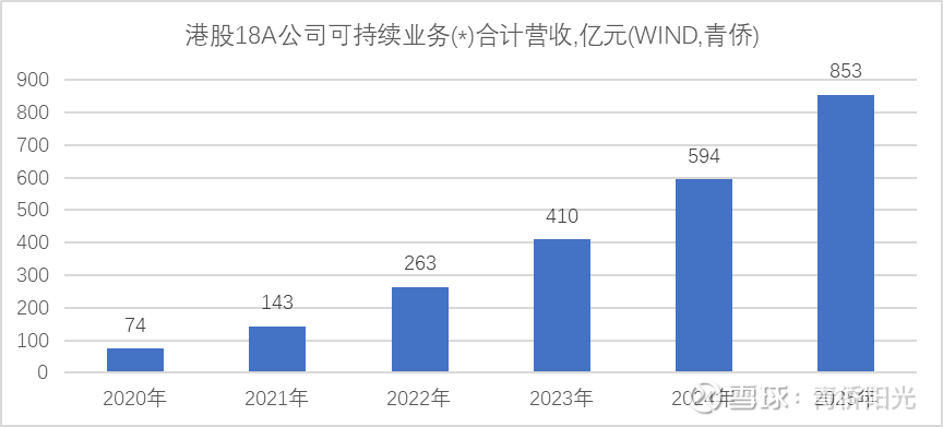 在中国医药行业整体景气度快速下行的2024-2025年,创新药几乎是医药内部唯一维持强景气的主要大类资产。创新药相对标准化,早期爆发性强、国内营收放量很快,IP本质也更容易出海、这些年对外BD交易增长迅猛;而且逻辑上说创新药是DRG改革的受益者、在DRG落地冲击中享受了独特的压力豁免优势。下图汇总统计了港股通过18A通道上市的未盈利生物科技公司可持续业务的合计营收(剔除一次性BD首付款、剔除康希诺和诺辉健康),从2020年的74亿、到2022年的263亿、再到2025年的853亿,2026年即使整体增速将明显放缓,预计也能跨过1000亿人民币门槛,背后是国产创新药在国内外都保持了十分强劲的营收增长。不过,当前18A营收里不少主力大药的渗透率已经偏高,很难再继续高增长,预计2026年的18A合计营收增速会降至30%出头,相比2025年可能会有10余个百分点的下降空间,并在之后2年里进一步小幅下降到20%-30%的更正常的高速增长区间。
