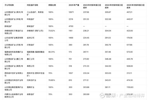 2025 销量 (kg) = 2025 营业收入 (万元) × 10 ÷ 2025 自产矿金均价 (元 / 克)3. 2023 / 2024 / 2025 克金完全成本