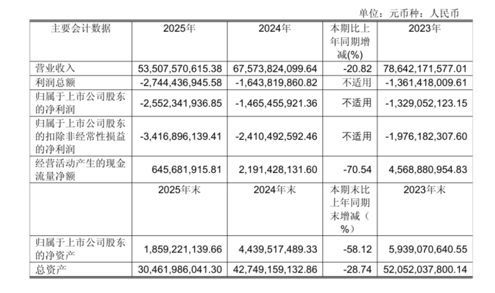 2022年,亏损27.63亿元;2023年,亏损收窄至13.29亿元;2024年,亏损14.65亿元;到了2025年,亏损进一步加剧,直接亏掉25.52亿元。