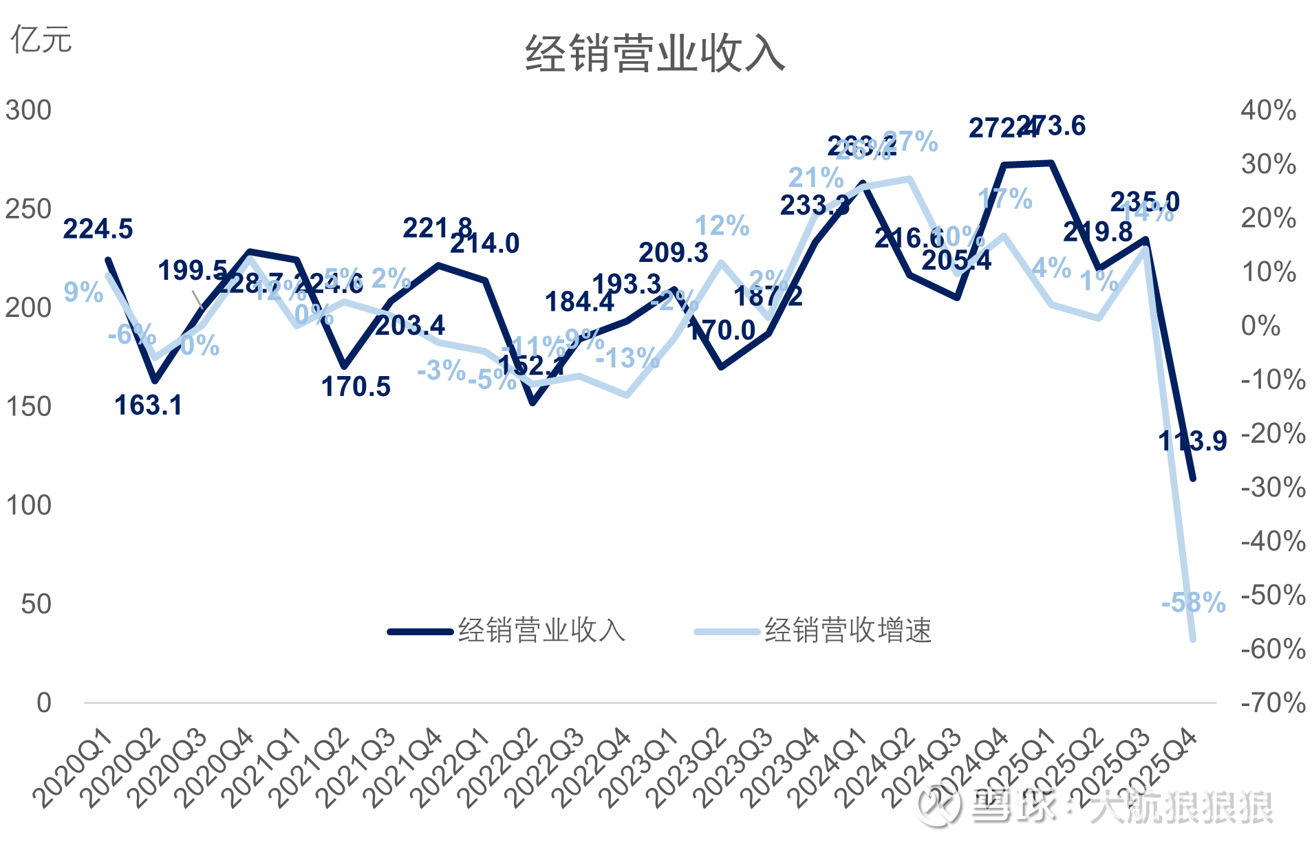于是乎,我们在四季度看到了变现普飞价差的极致演绎,通过上面提到的“礼包”和常规配售,茅台通过直营渠道进行了大量的产品分销,在报表上就体现为第四季度直营收入的“逆向高增”。而在12月叫停该政策、转向市场化经营后,茅台在实质上放弃了增长指标,四季度后半叶的发货节奏大变,正常的经销收入也受到了影响,最终在报表上体现为经销收入的大幅下滑。