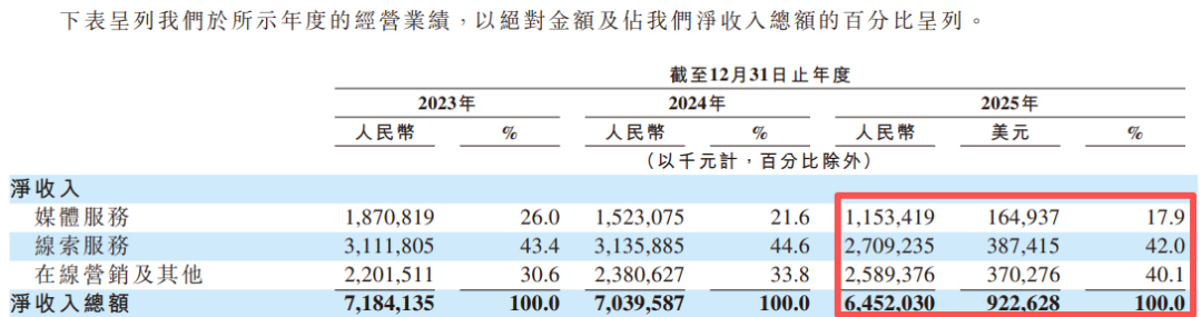 一是媒体服务:就品牌推广、新车发布及销售推广为汽车制造商提供有针对性的营销解决方案。这一块的营业收入在2025年的总营收中占比17.9%,较2024年的21.6%和2023年的26%呈逐年下降趋势,三年占比下降近8个百分点。
