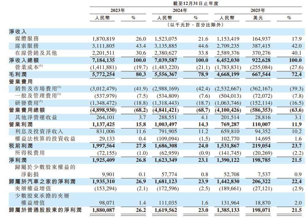 年报显示,汽车之家2025年的业绩全面收缩。
